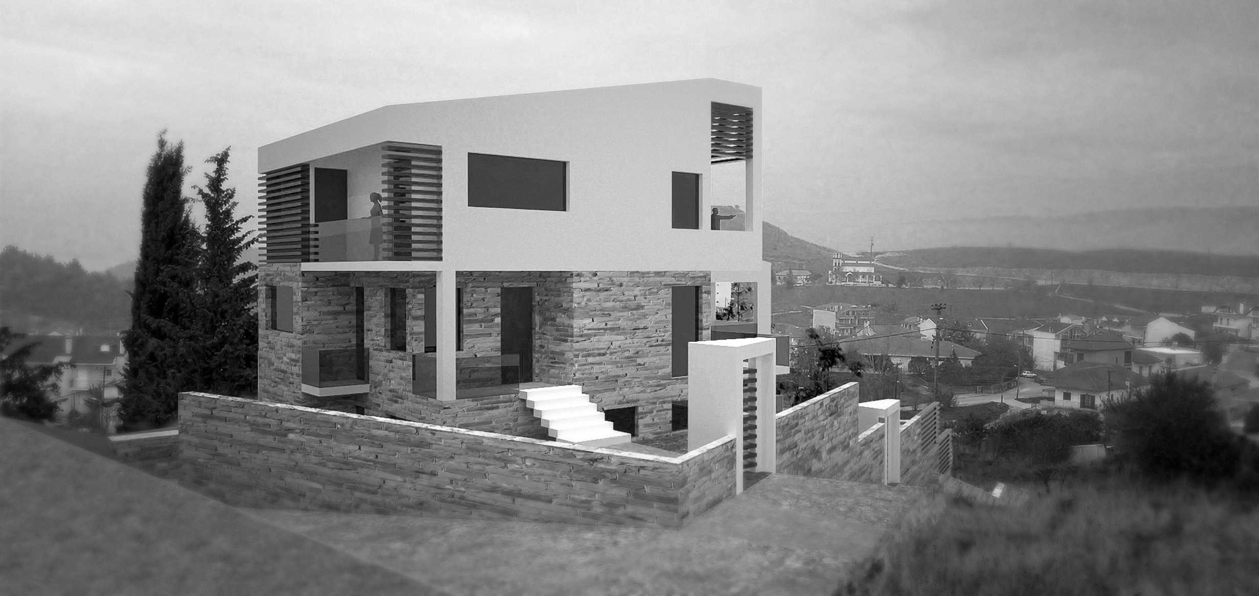 Περιγραφή ΈργουΕντός της πόλης των Ιωαννίνων, αλλά εκτός του κύριου αστικού ιστού της, σε περιοχή όπου το φυσικό τοπίο υπερισχύει του αστικού, σχεδιάζονται και κατασκευάζονται οι δύο αυτόνομες κατοικίες.