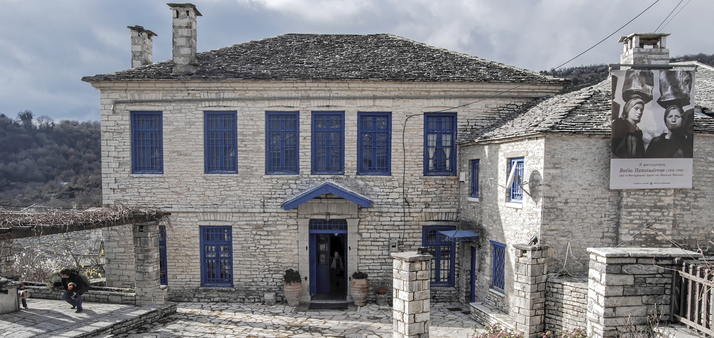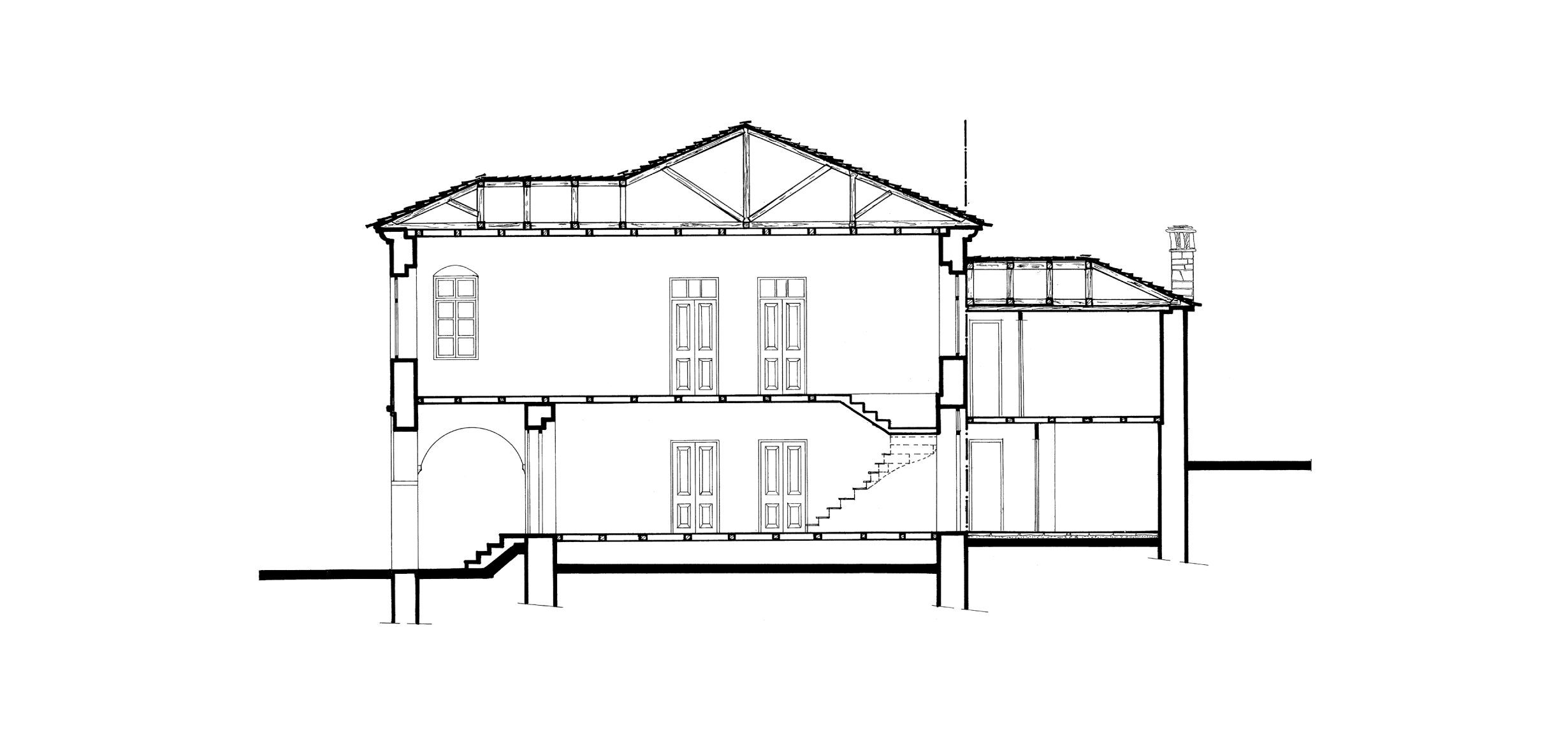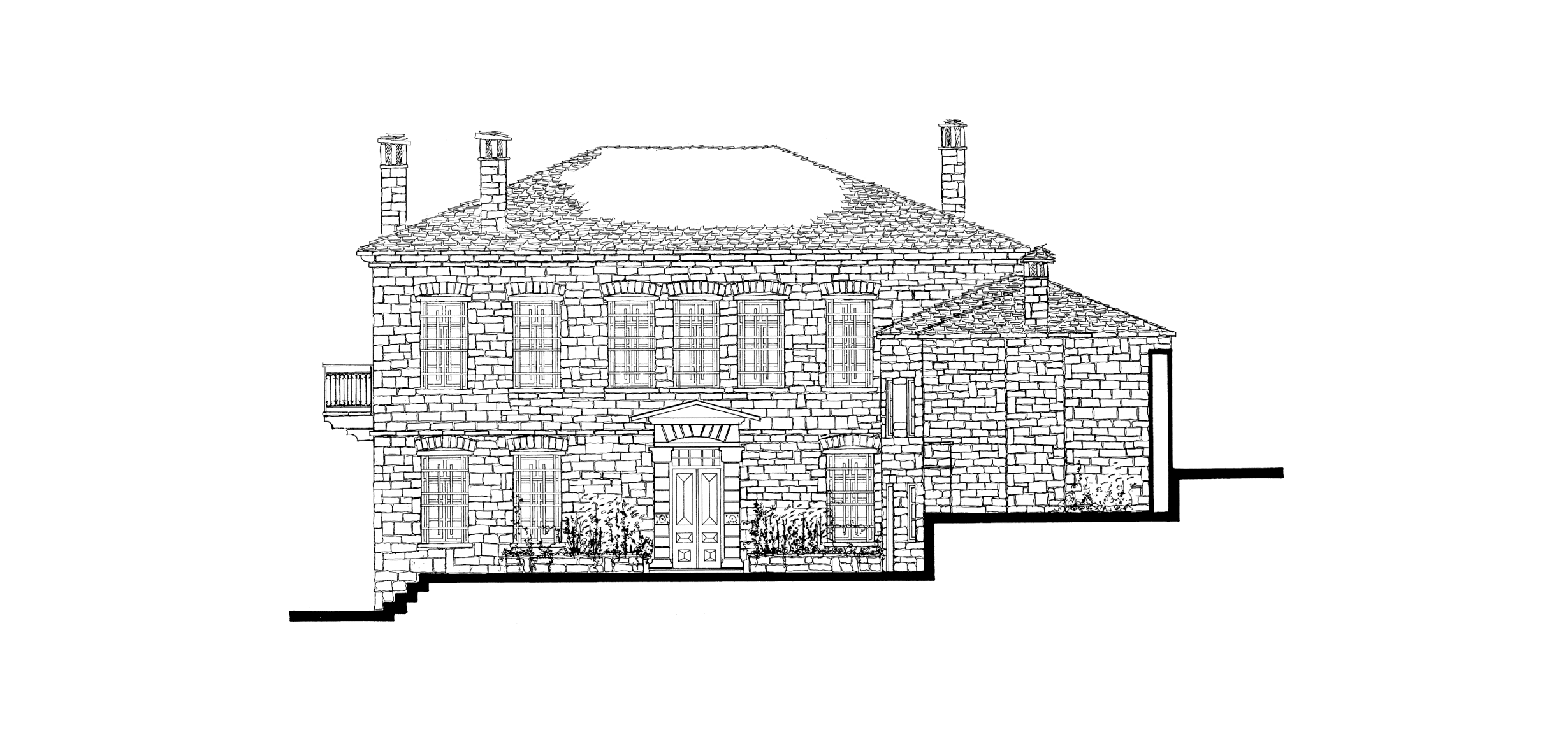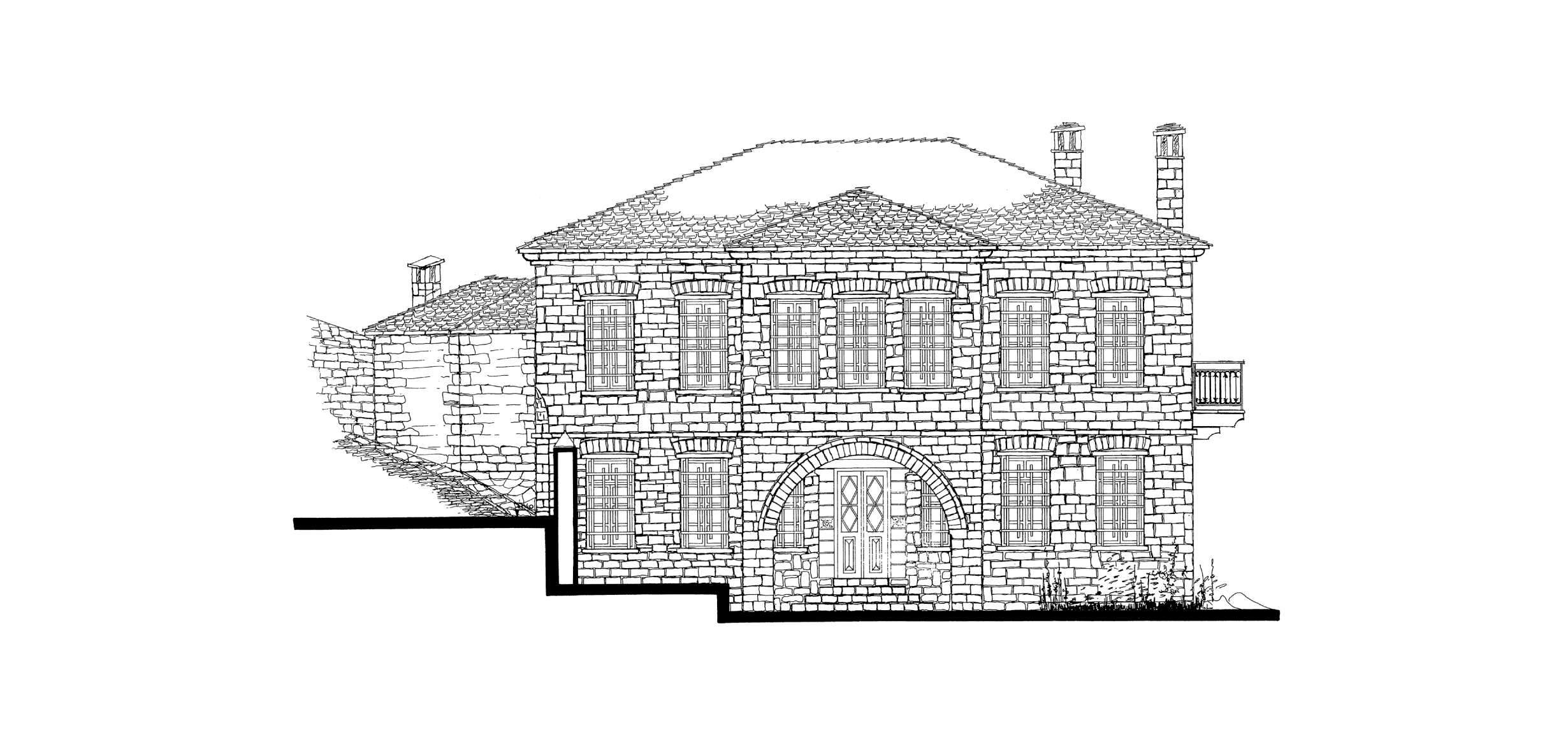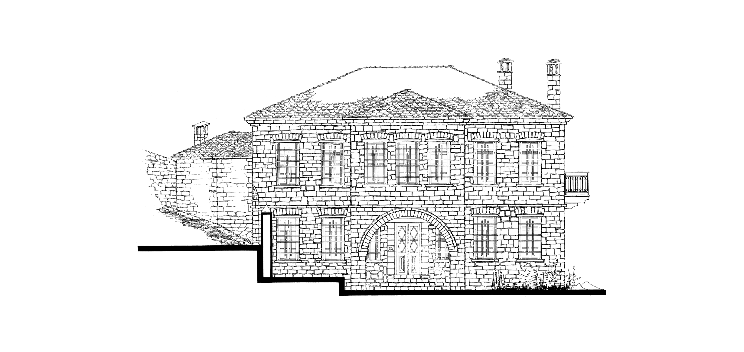 Στο γραφείο Π5 ανατέθηκε η μελέτη επισκευής της υπάρχουσας κατοικίας, με την ταυτόχρονη αλλαγή χρήσης της σε εκθεσιακό κέντρο. Με περισσή φροντίδα μελετήθηκαν τα επί μέρους τμήματα τόσο της κατοικίας όσο και του αύλειου χώρου με τη λίθινη περίφραξη και την χαρακτηριστική αυλόπορτα και σχεδιάστηκαν οι επεμβάσεις μετατροπής της κατοικίας σε εκθεσιακό χώρο.